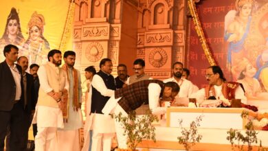 सागर केंद्रीय मंत्री श्री शिवराज सिंह श्रीराम कथा में शामिल हुए, दक्षिणमुखी हनुमान जी की आरती उतारी